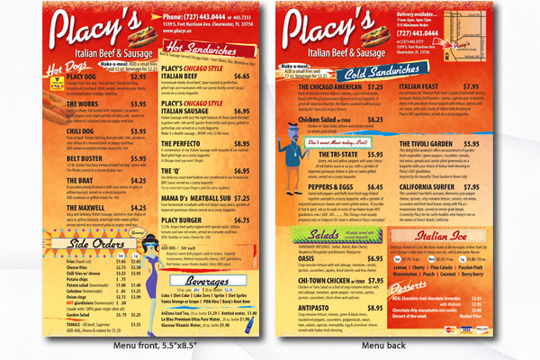 Menu for Fast Food Restaurant in Clearwater, Florida